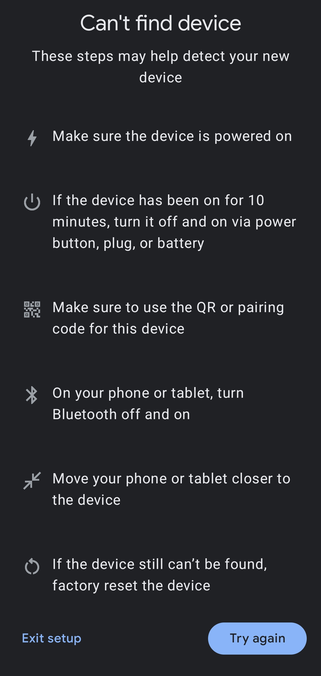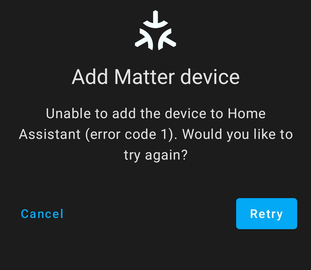 I got the follow error - the Matter setup wizard couldn’t find my device.