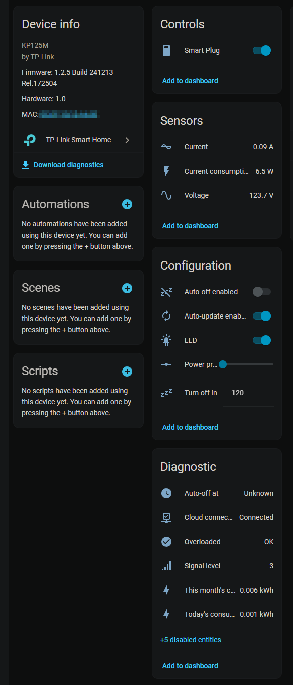 This is that same switch using the native TP-Link integration: